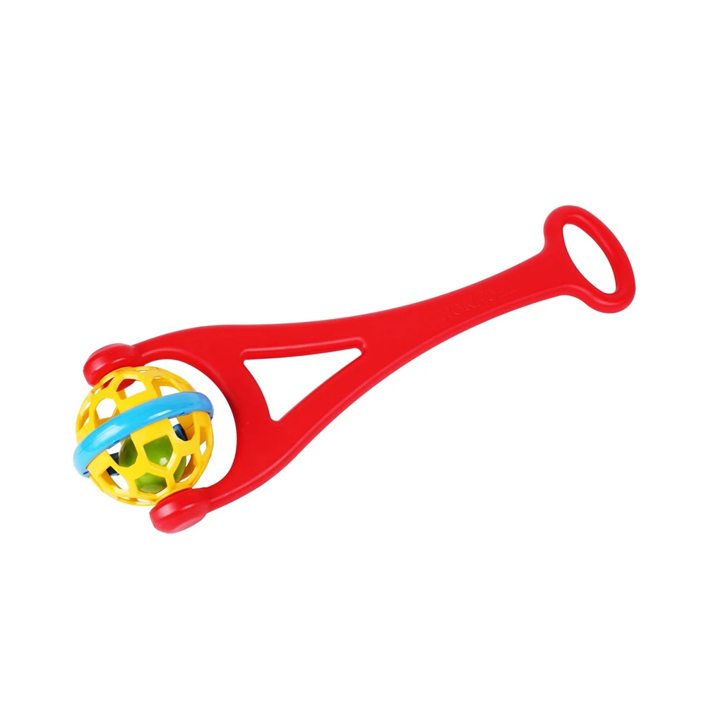 Jucăria de împins cu bilă zornăitoare este concepută special pentru cei mici, stimulându-le mersul și motricitatea printr-un joc distractiv și sigur. Bila transparentă cu elemente colorate produce sunete zornăitoare atunci când jucăria este împinsă, atrăgând atenția copilului și motivându-l să se miște.