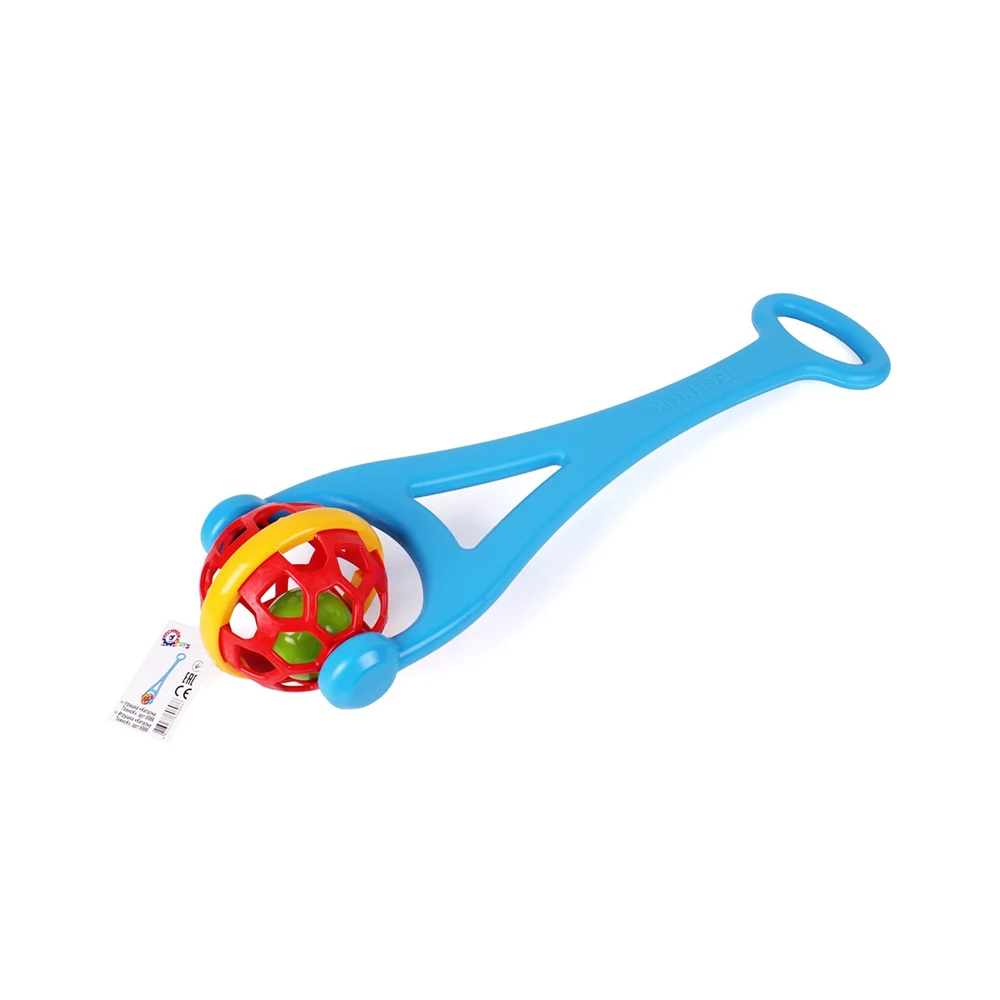 Jucărie de împins cu bilă zornăitoare, ideală pentru dezvoltarea mersului și a coordonării la copiii mici.