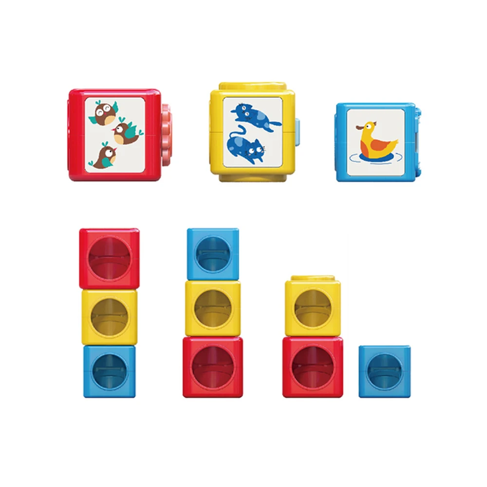 Jucărie educativă interactivă pentru copii mici, cu cuburi colorate și bile expresive, ideală pentru stivuire, sortare și dezvoltarea gândirii logice și a coordonării mână-ochi.