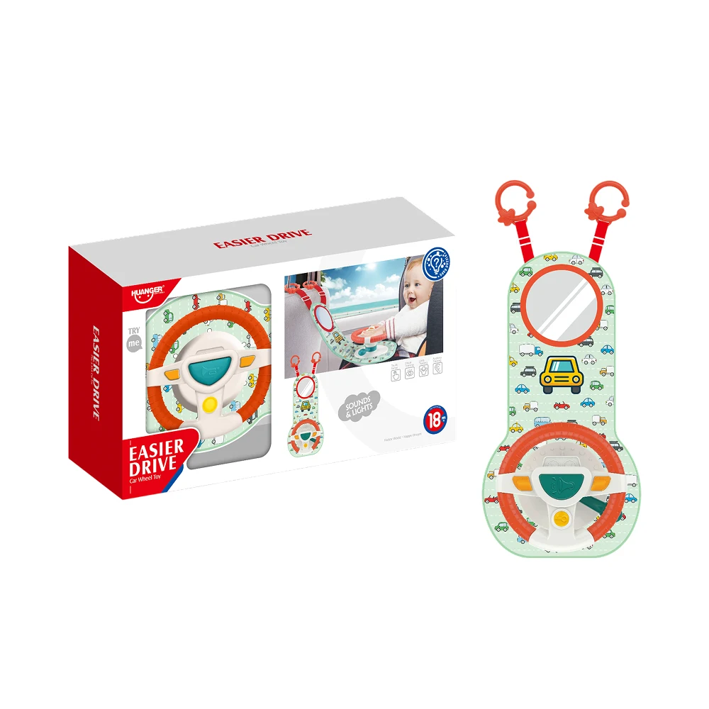 Jucărie interactivă tip volan auto, cu lumini și sunete, ideală pentru divertismentul și stimularea senzorială a bebelușilor, atât acasă cât și în timpul călătoriilor.
