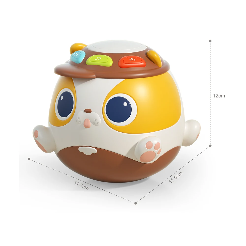 Jucăria muzicală cu balans pentru copii este ideală pentru joaca timpurie, atrăgând atenția celor mici prin forma simpatică, sunetele plăcute și efectele luminoase. Datorită bazei rotunjite, jucăria se clatină înainte și înapoi și revine singură în poziție verticală, încurajând copilul să interacționeze constant cu ea.