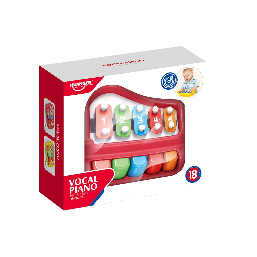 Jucărie muzicală tip xilofon, special concepută pentru stimularea auzului și a coordonării copiilor mici, cu clape colorate ușor de apăsat.