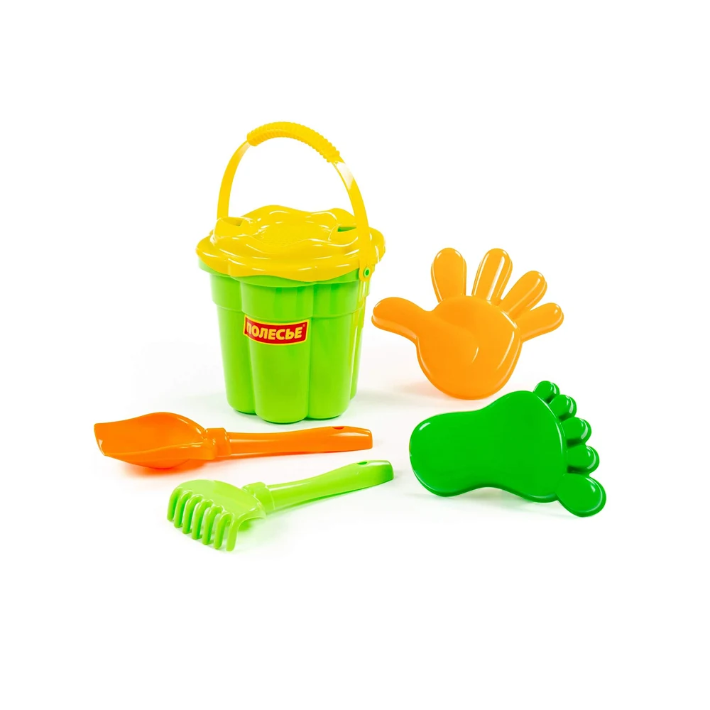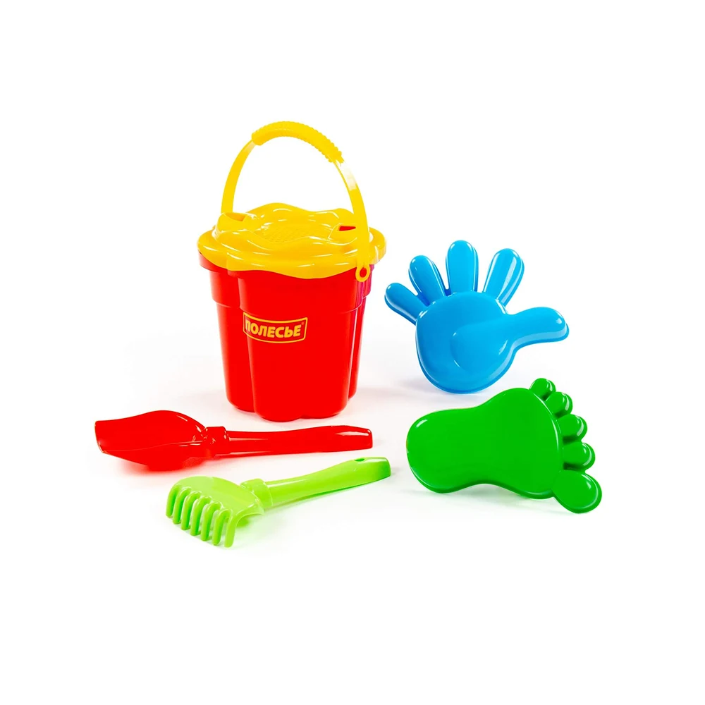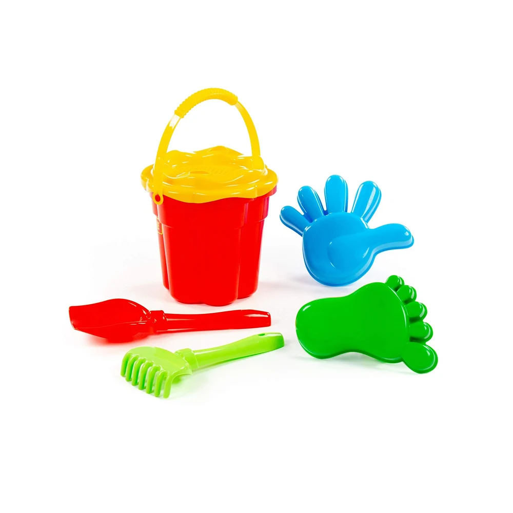 Set de joacă pentru nisip, ideal pentru copii, care include găletușă și accesorii pentru joacă creativă în aer liber sau la plajă.