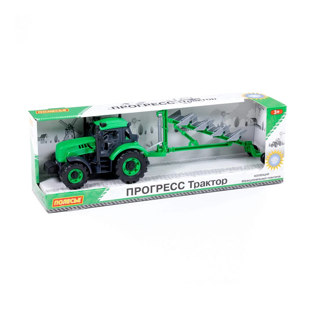 Tractor cu inerție și plug Progress, verde (în cutie), Polesie (91307)