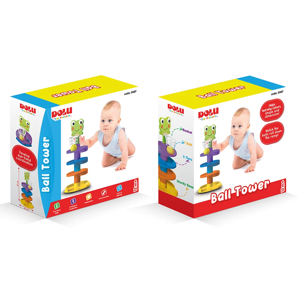 Designul vertical, culorile vii și mecanismul simplu de utilizare transformă joaca într-o experiență captivantă, contribuind la dezvoltarea motricității fine și a percepției vizuale. Jucăria este realizată din materiale rezistente, potrivite pentru utilizare zilnică.