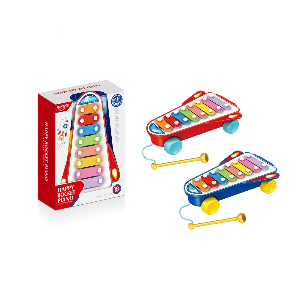 Acest xilofon muzical tip rachetă este o jucărie ideală pentru primele experiențe muzicale ale bebelușilor. Designul vesel, în formă de rachetă, și clapele colorate atrag atenția copilului și îl încurajează să exploreze sunetele prin joacă activă.