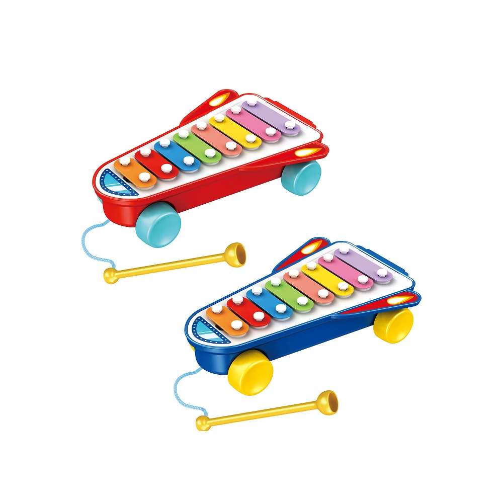 Xilofonul este prevăzut cu 8 clape care produc sunete diferite atunci când sunt lovite cu bagheta inclusă, contribuind la dezvoltarea simțului ritmic și a percepției auditive. Activitatea de lovire ajută la îmbunătățirea coordonării mână-ochi și a motricității fine.
