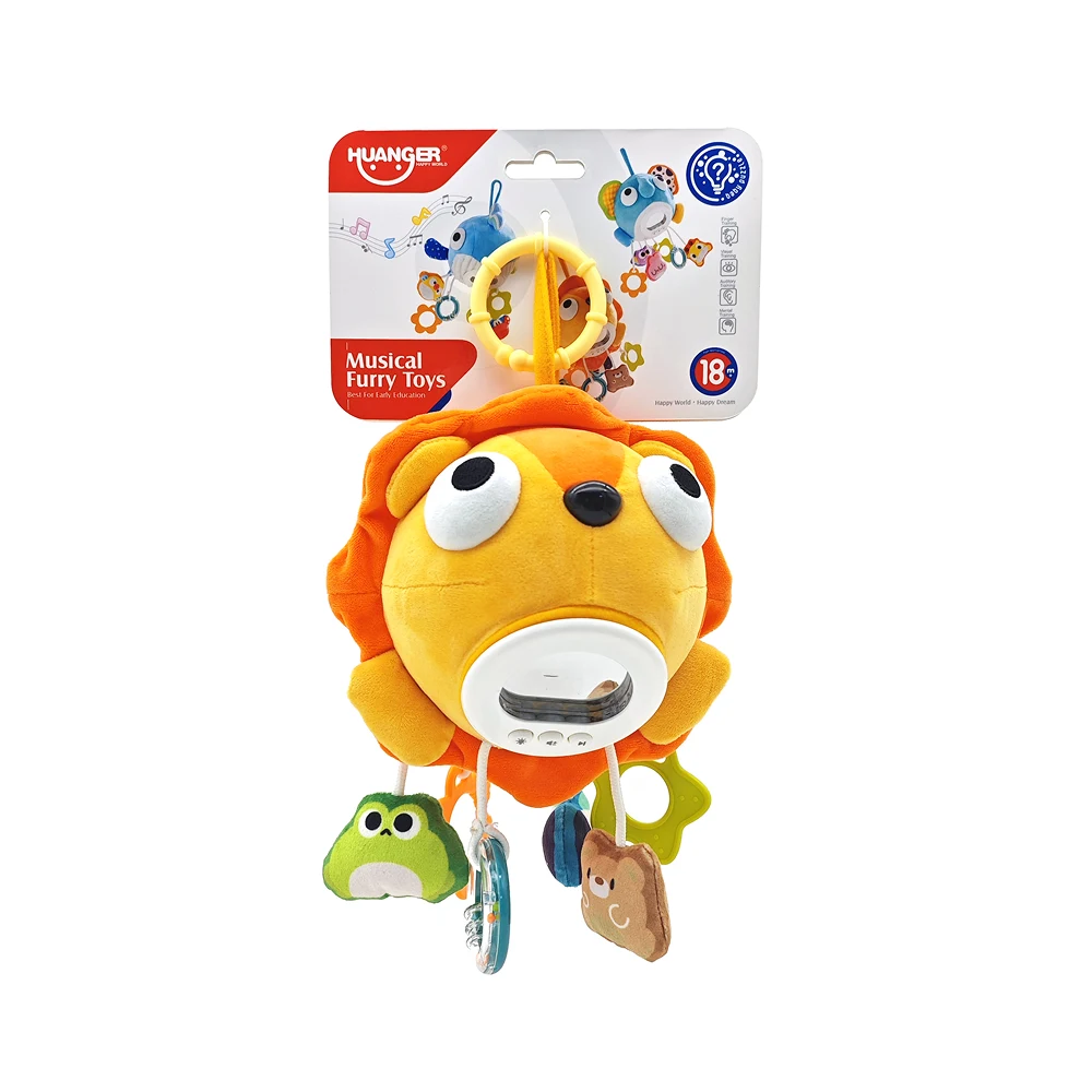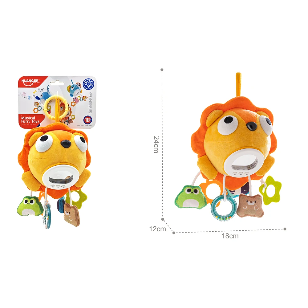 Jucărie zornăitoare leu din pluș cu activități senzoriale, Huanger HE0563 (77945)