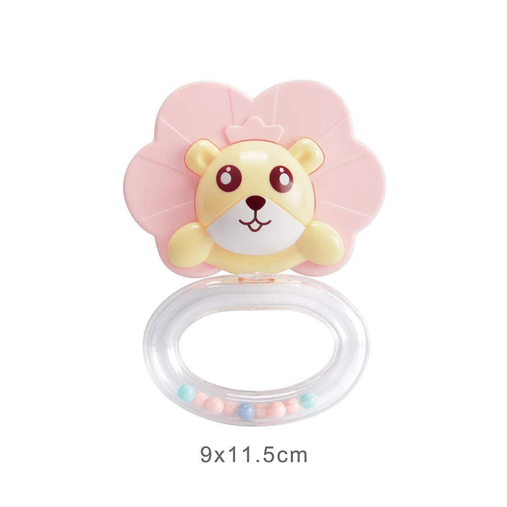 Această jucărie zornăitoare în formă de leu este concepută special pentru bebeluși, având un design prietenos și dimensiuni potrivite pentru mâinile mici. Partea superioară colorată atrage atenția copilului, iar mânerul transparent cu bile produce sunete discrete la mișcare, stimulând simțul auditiv.