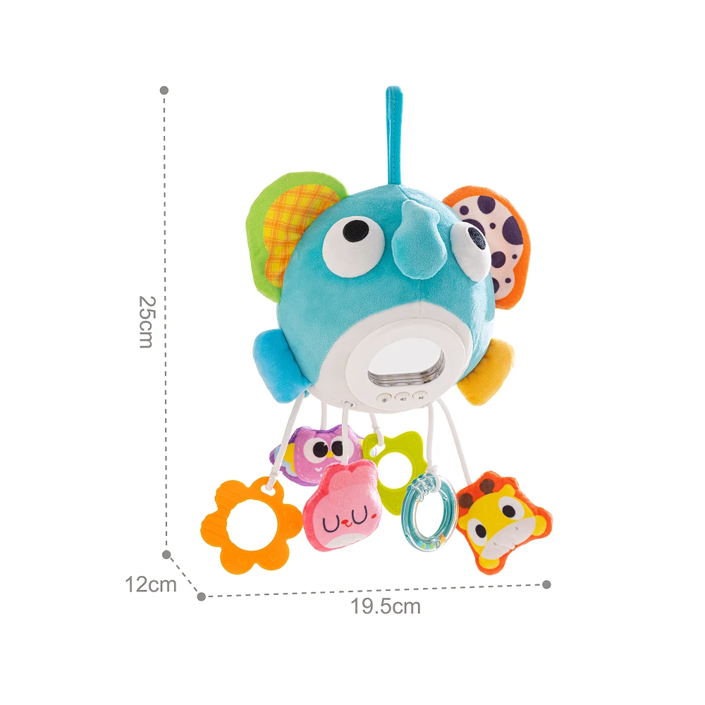 Această jucărie zornăitoare în formă de elefant este realizată din pluș moale și este concepută special pentru stimularea timpurie a bebelușilor. Include mai multe elemente senzoriale suspendate, ușor de apucat, tras sau strâns, care ajută la dezvoltarea coordonării mână-ochi și a simțului tactil.