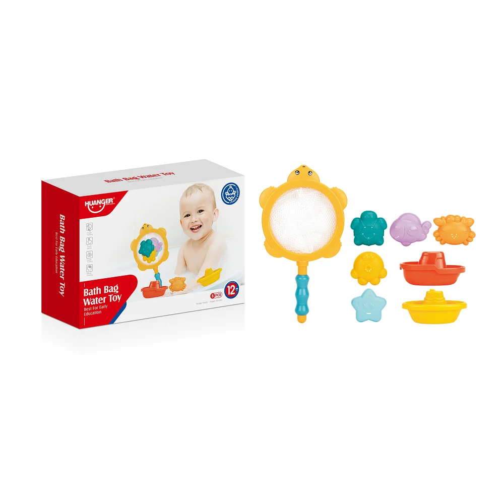 Set jucării de baie cu plasă de pescuit, animăluțe și bărcuțe, Huanger HE0265