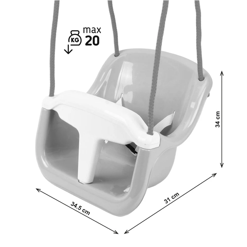 Leagănul este conceput pentru a oferi confort și siguranță în timpul jocului, fiind potrivit pentru utilizare atât în interior, cât și în exterior. Forma ergonomică a scaunului și spătarul înalt susțin corect poziția copilului, oferind stabilitate în timpul utilizării.