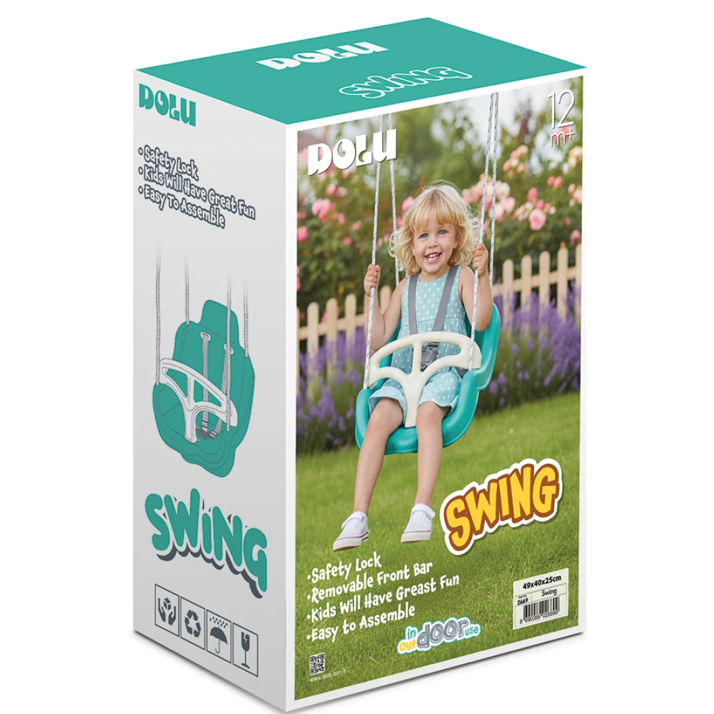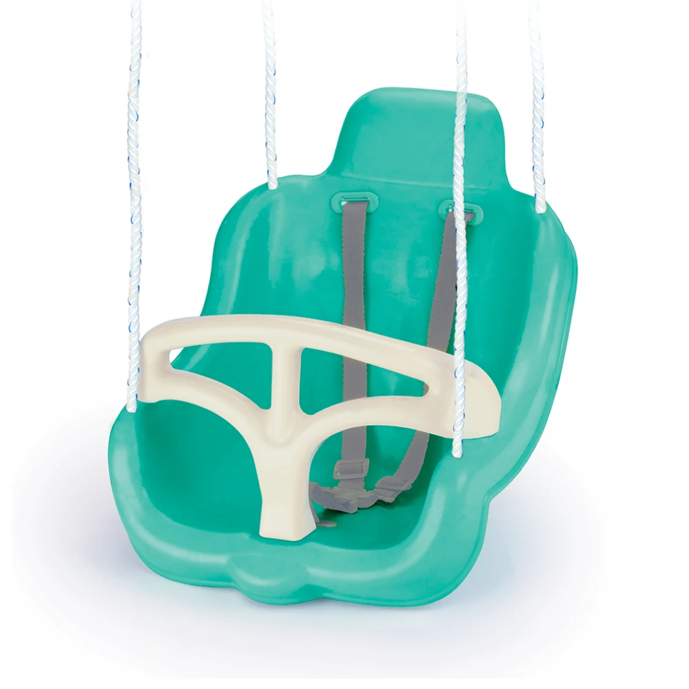 Prevăzut cu spătar și protecție frontală, leagănul oferă stabilitate și siguranță în timpul utilizării. Elementele pot fi ajustate sau îndepărtate treptat, pe măsură ce copilul crește, transformând produsul într-un leagăn clasic.