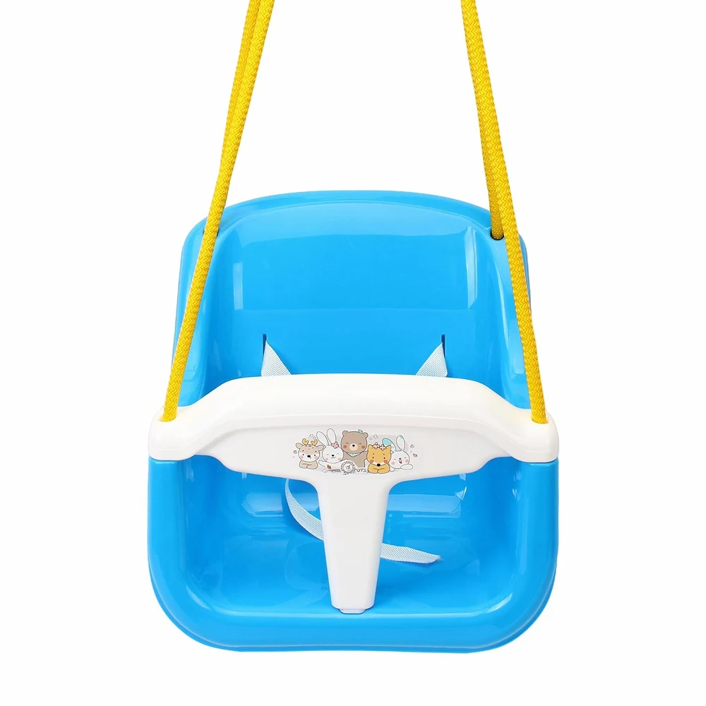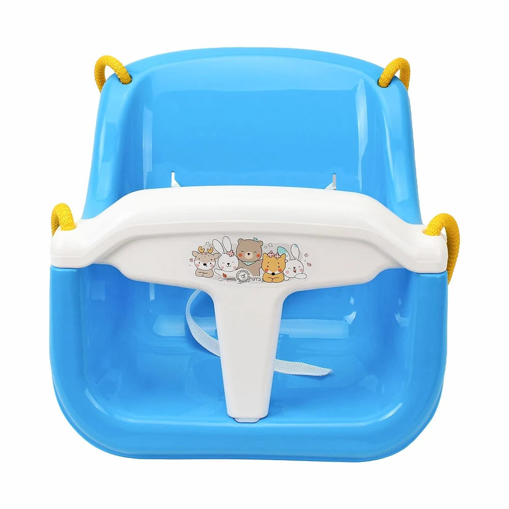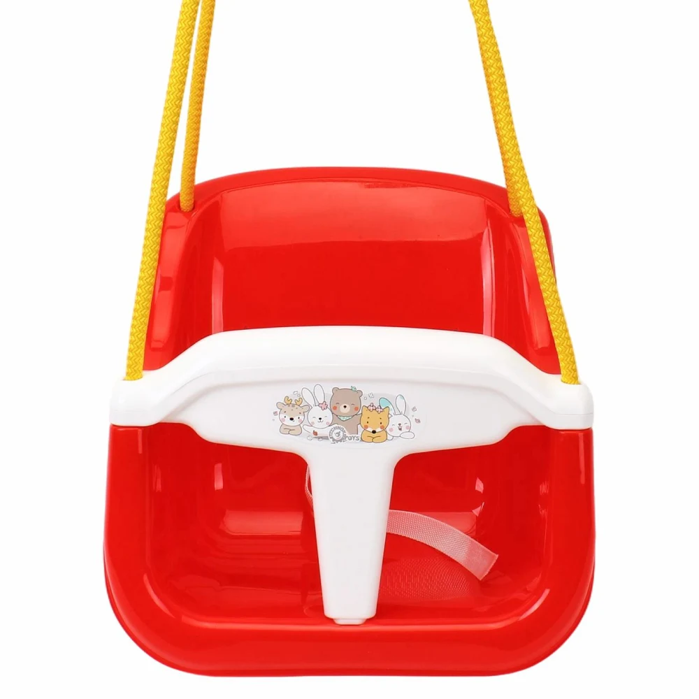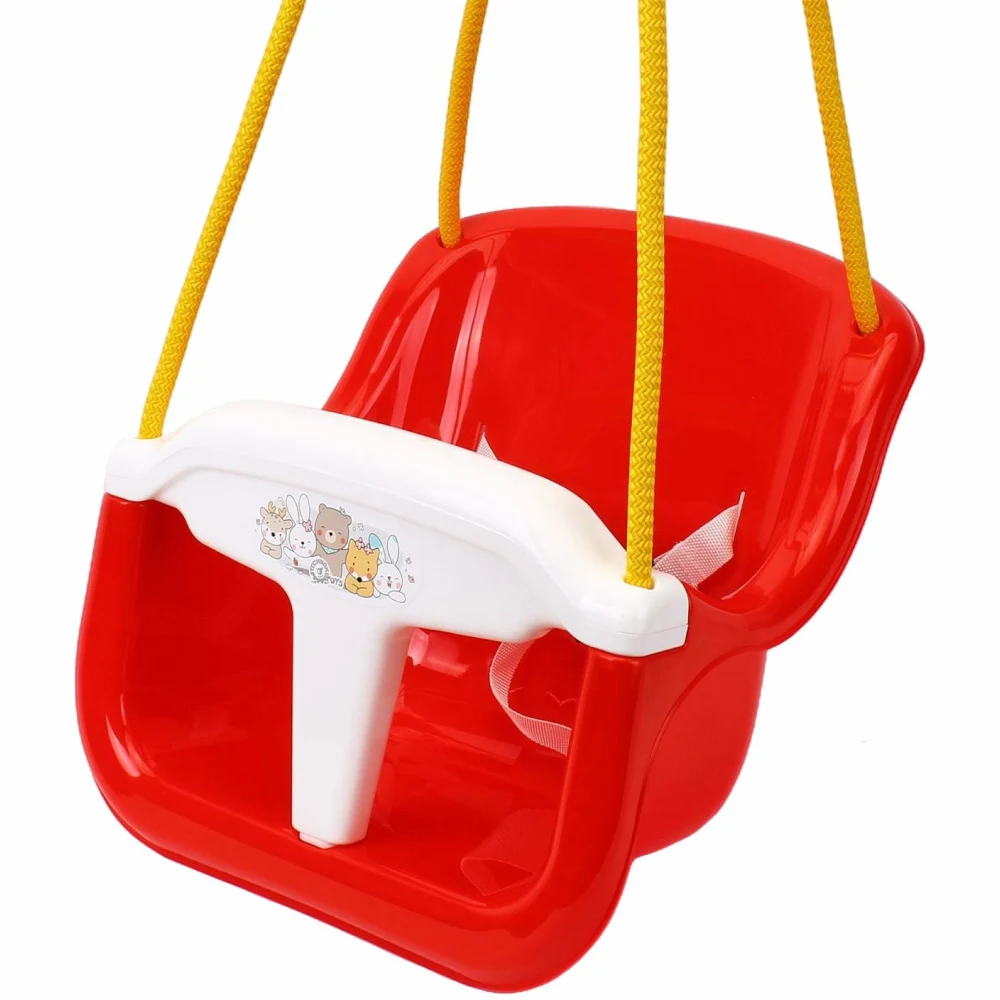 Leagăn pentru copii, cu design stabil și sigur, prevăzut cu protecție frontală și spătar. Ideal pentru utilizare în interior sau exterior.