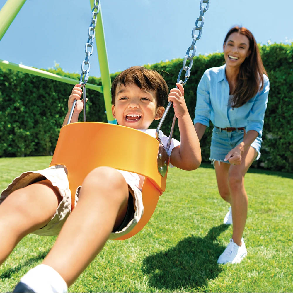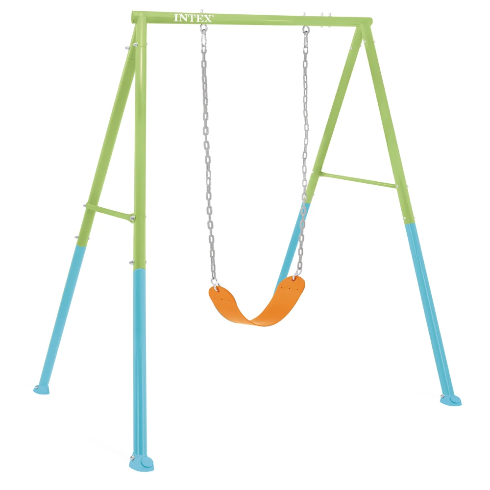 Leagăn cu cadru metalic și două scaune detașabile, conceput pentru joaca în aer liber. Oferă flexibilitate în utilizare și stabilitate ridicată, fiind potrivit pentru diferite etape de creștere.