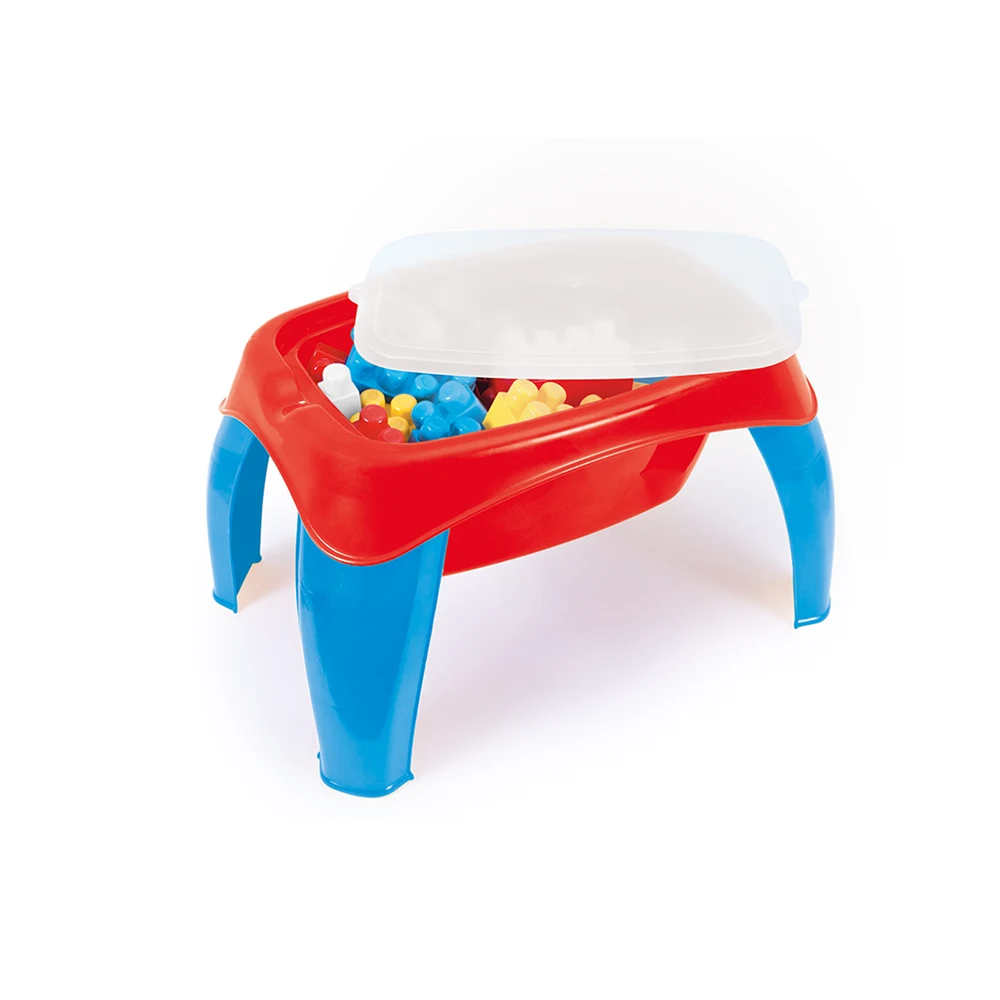 Masă de activități pentru copii, echipată cu piese mari de construcție, ideală pentru joacă educativă, dezvoltarea creativității și organizarea activităților de construcție încă de la vârste fragede.