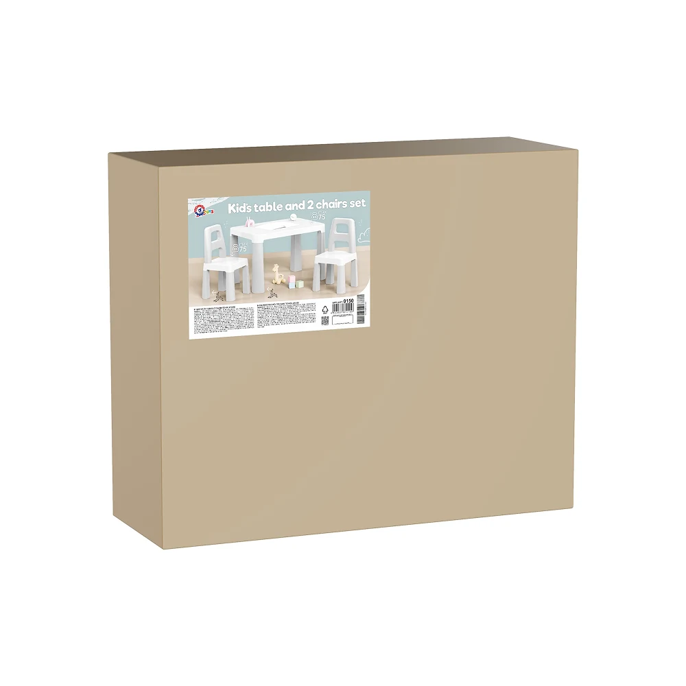 Setul de mobilier pentru copii, format din masă și doua scaune, este ideal pentru joacă, desen, citit sau activități creative, fiind potrivit pentru copiii de la 1,5 ani.