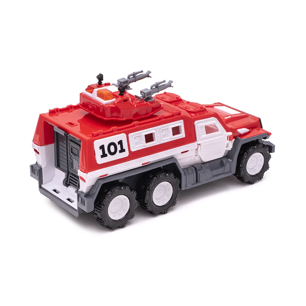 Designul blindat și detaliile specifice vehiculelor de intervenție atrag atenția copiilor și îi încurajează să creeze propriile scenarii de salvare. Dimensiunile compacte fac jucăria ușor de manevrat, iar forma robustă îi asigură o utilizare îndelungată.