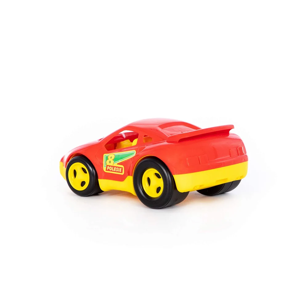 Mașină de curse pentru copii, cu design sportiv și formă aerodinamică, ideală pentru jocuri dinamice și pline de acțiune.