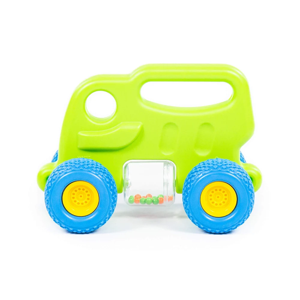 Această mașinuță zornăitoare este ideală pentru bebeluși aflați la începutul descoperirii jocului activ. Forma ergonomică permite prinderea ușoară cu mâinile mici, iar roțile mari și stabile fac jucăria potrivită atât pentru joaca pe podea, cât și pentru împingere ușoară.