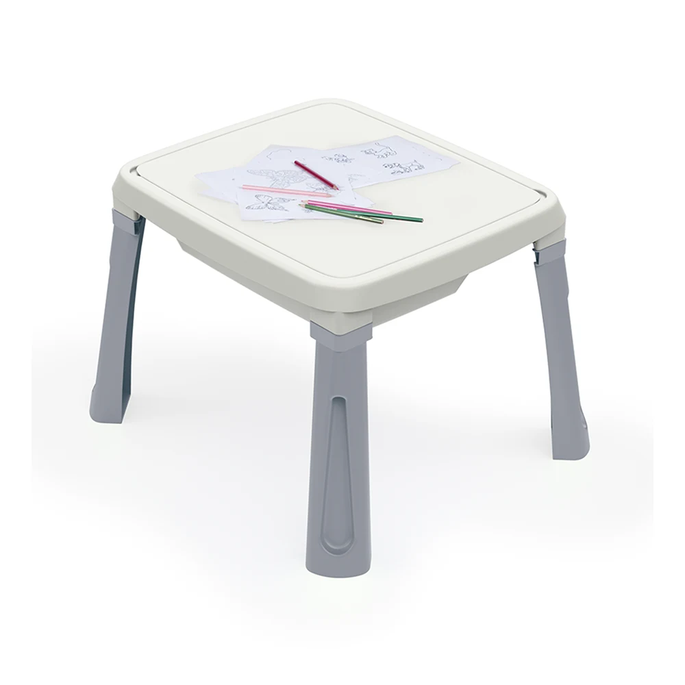 Măsuța este prevăzută cu zone dedicate pentru jocuri cu apă și nisip, precum și elemente interactive pentru turnare, transfer și experimentare. Aceste activități contribuie la dezvoltarea coordonării mână-ochi, a motricității fine și a forței fizice, încurajând în același timp creativitatea și explorarea senzorială.