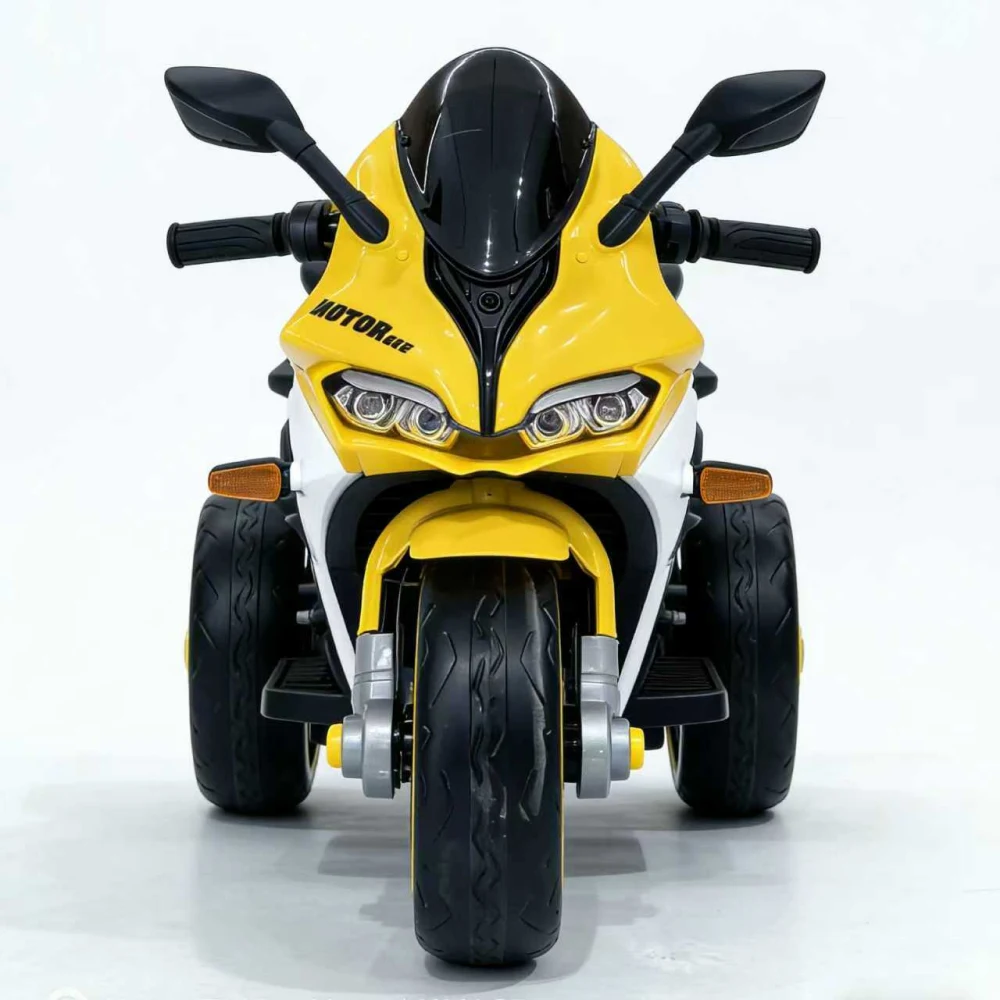 Motocicleta este echipată cu două motoare de 35 W și o baterie de 12 V cu capacitatea de 10 Ah, oferind o funcționare stabilă și o deplasare lină. Controlul se realizează prin accelerator de mână, iar telecomanda pentru părinți permite controlul vehiculului atunci când este necesar.