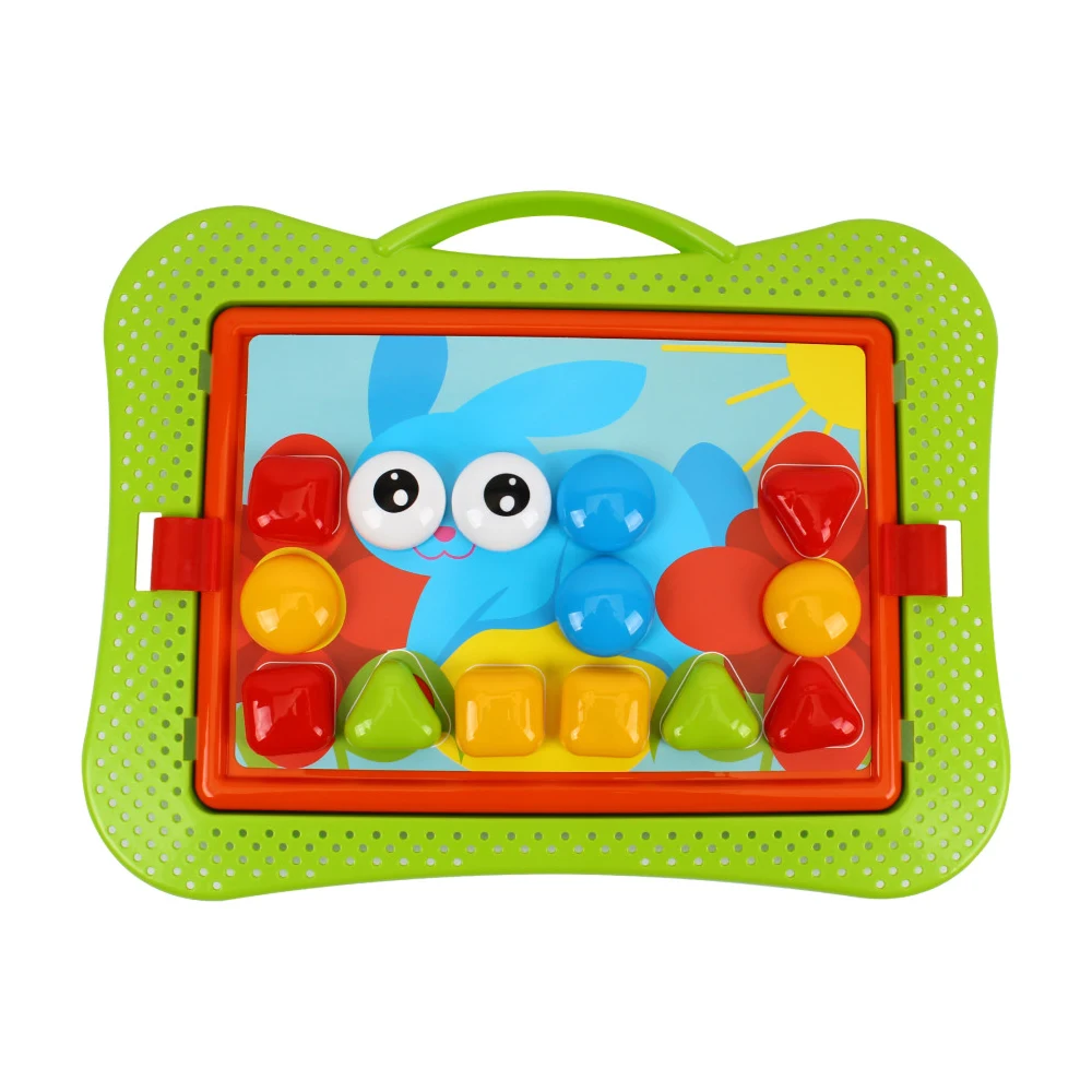 Mozaic educativ cu butoane mari pentru copii de la 2 ani, cu planșe ilustrate și culori vii. Ideal pentru dezvoltarea timpurie prin joacă sigură.