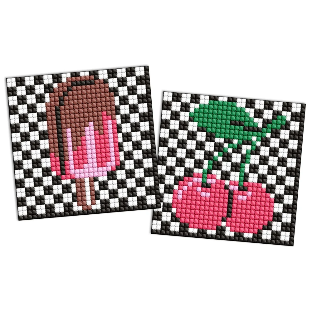 Mozaic cu diamante pe magnet, set creativ cu 2 modele cireșe și înghețată și accesorii incluse. Activitate plăcută cu rezultat decorativ realizat manual.