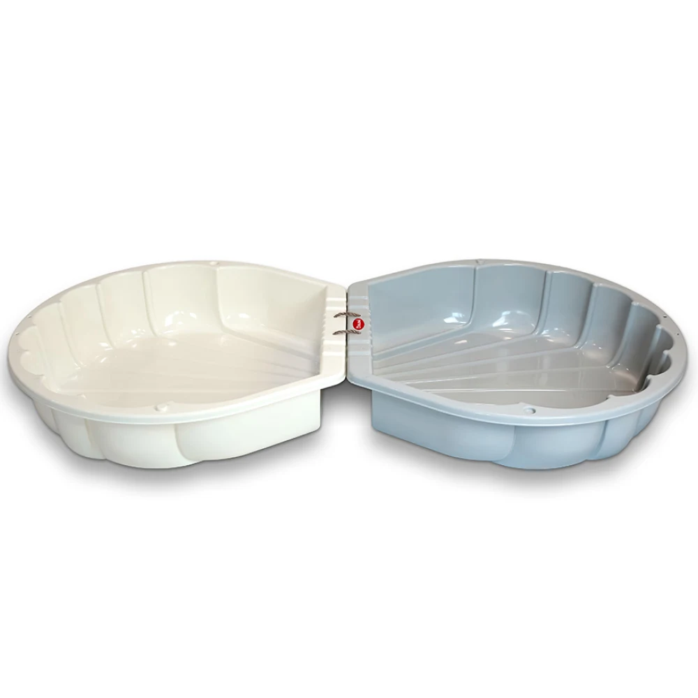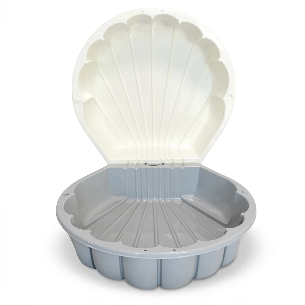 Nisipieră pentru copii 2 în 1, concepută pentru joacă în aer liber, care poate fi folosită atât ca nisipieră, cât și ca piscină în zilele călduroase. Designul în formă de scoică este atractiv și practic, oferind spațiu generos pentru distracție.