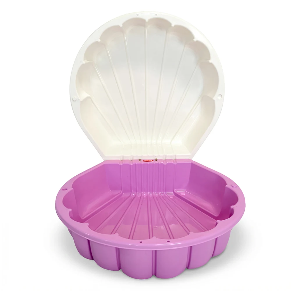 Nisipieră pentru copii 2 în 1, concepută pentru joacă în aer liber, care poate fi folosită atât ca nisipieră, cât și ca piscină în zilele călduroase. Designul în formă de scoică este atractiv și practic, oferind spațiu generos pentru distracție.