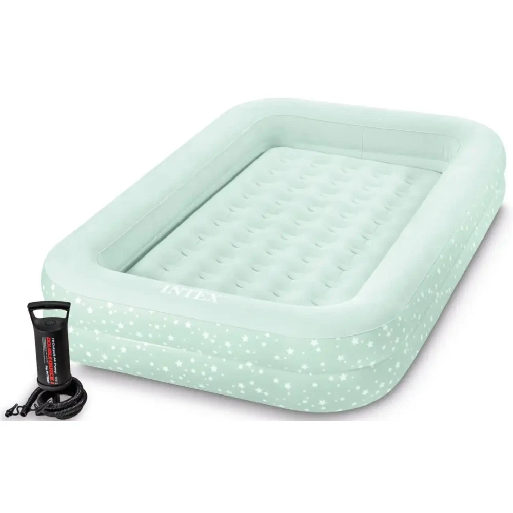 Pat gonflabil conceput special pentru copii cu vârsta între 3 și 6 ani, ideal pentru somn acasă sau în deplasări. Designul cu margini laterale oferă un plus de siguranță, iar construcția compactă îl face ușor de transportat și utilizat oriunde este nevoie.