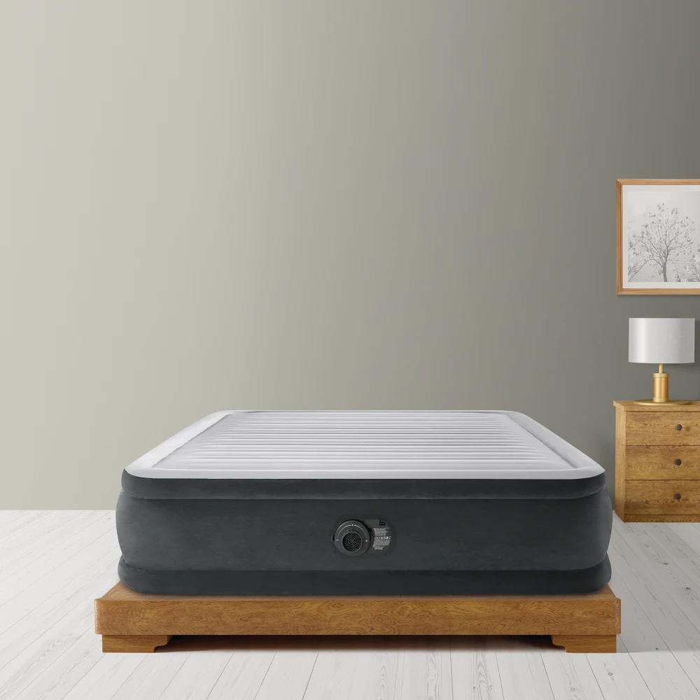 Patul gonflabil Queen Comfort-Plush este o soluție practică și confortabilă pentru dormit, oferind senzația unui pat clasic, într-o formă ușor de depozitat. Suprafața superioară premium, moale și catifelată, conturează corpul și contribuie la un somn relaxant.