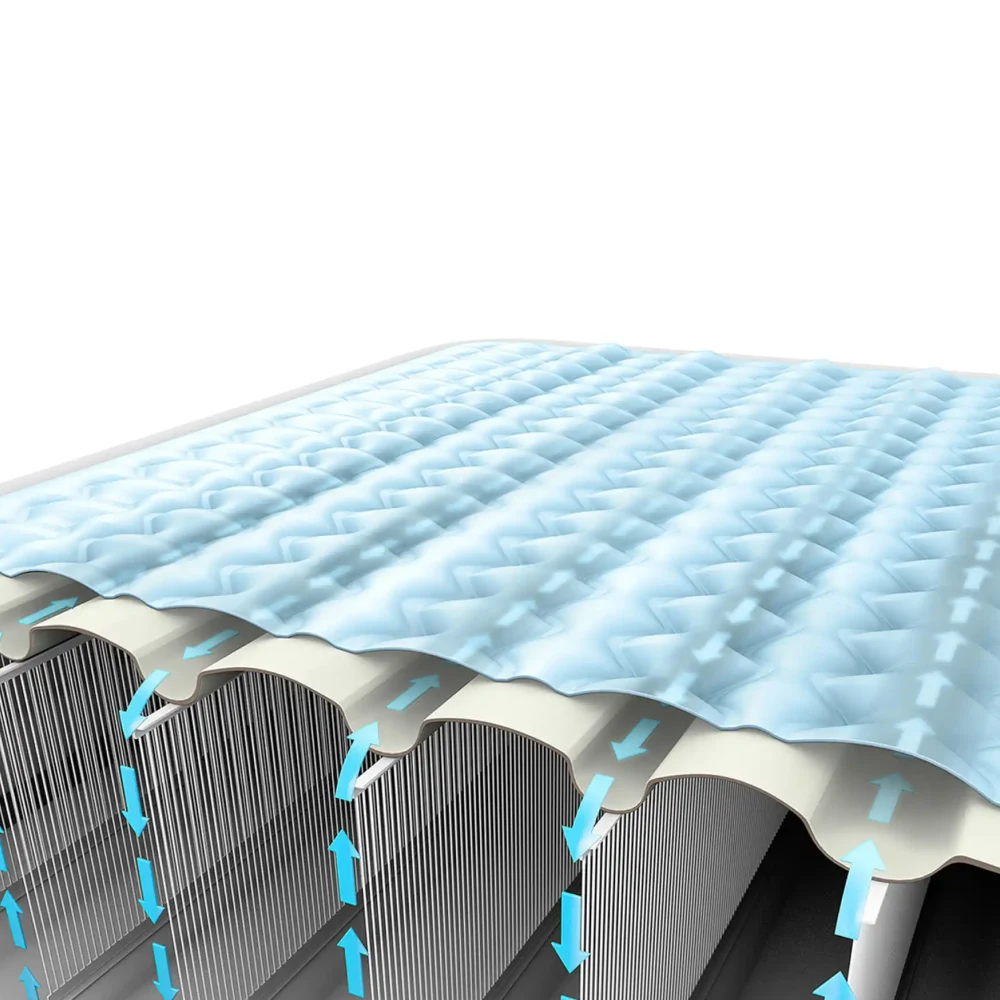 Suprafața superioară premium de confort catifelată și moale conturează corpul, contribuind la o poziție relaxantă și la un somn plăcut. Structura interioară asigură stabilitate bună și menținerea formei în timpul utilizării, fără senzația de afundare.