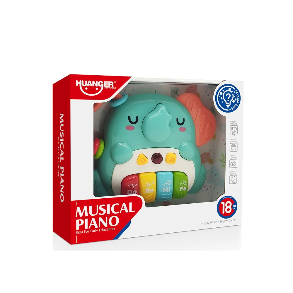 Acest pian muzical interactiv în formă de elefant este o jucărie educativă ideală pentru copiii mici, care combină muzica, sunetele și culorile într-un mod atractiv și sigur. Clapele colorate și butoanele ușor de apăsat încurajează copilul să exploreze sunetele și să interacționeze activ cu jucăria.