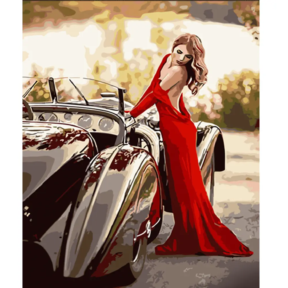 HH080 Pictura pe numere „Fata in rochie langa un Lamborghini”, 40×50 cm