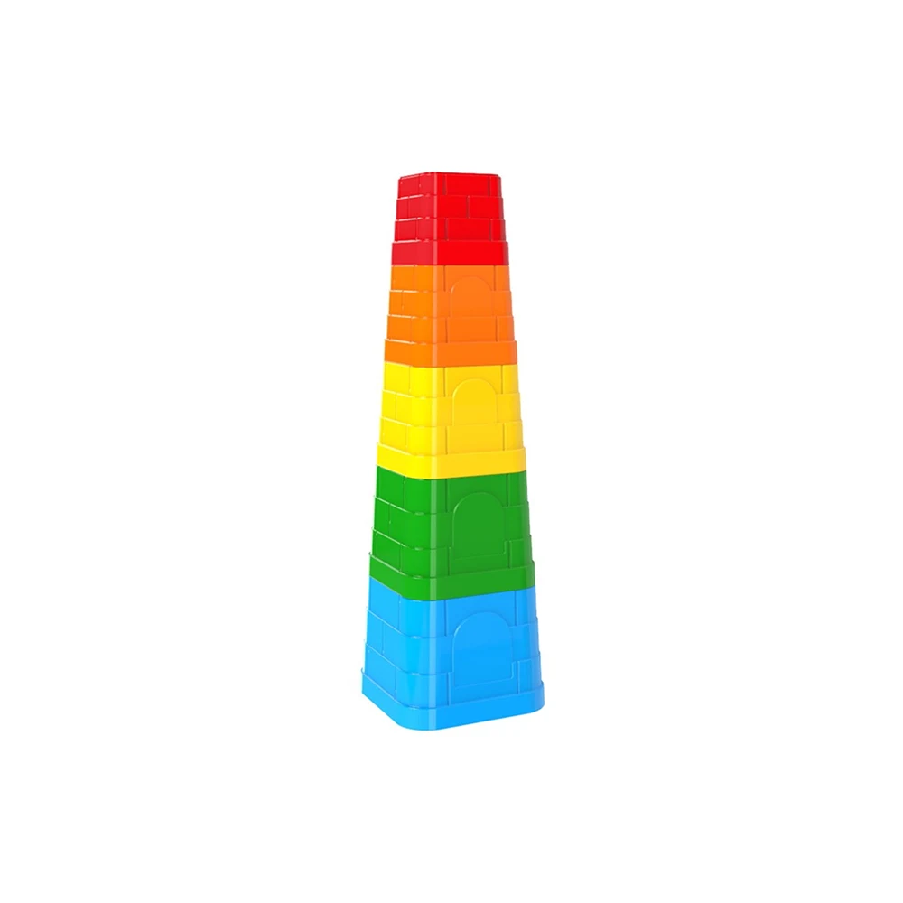 Piramidă pentru nisip, ideală pentru joacă educativă, ajută la dezvoltarea coordonării, motricității fine și recunoașterea culorilor.