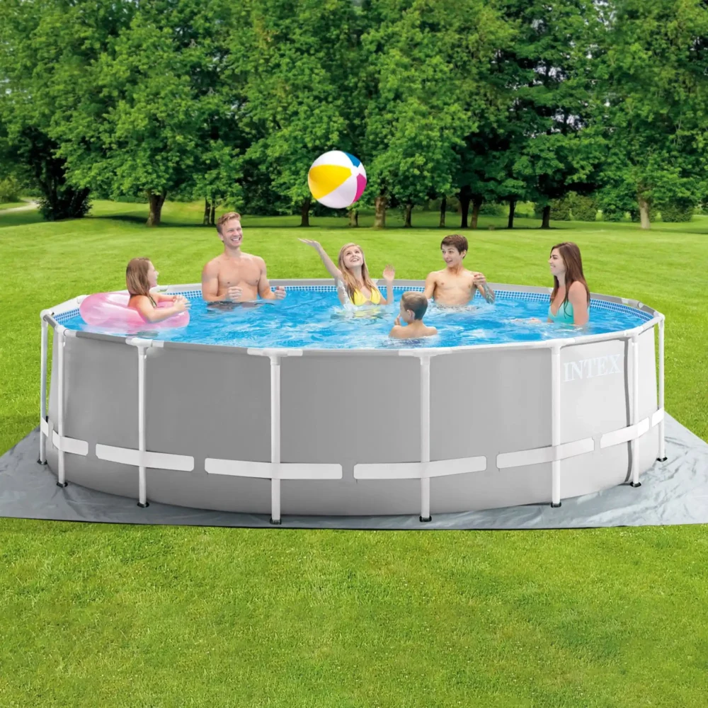 Setul este complet echipat pentru utilizare imediată și include pompă de filtrare cu cartuș, debit 3785 L/h, pentru menținerea apei curate, scară pentru acces sigur și confortabil, prelată pentru protecția apei împotriva impurităților și prelată de sol pentru protejarea bazei piscinei.