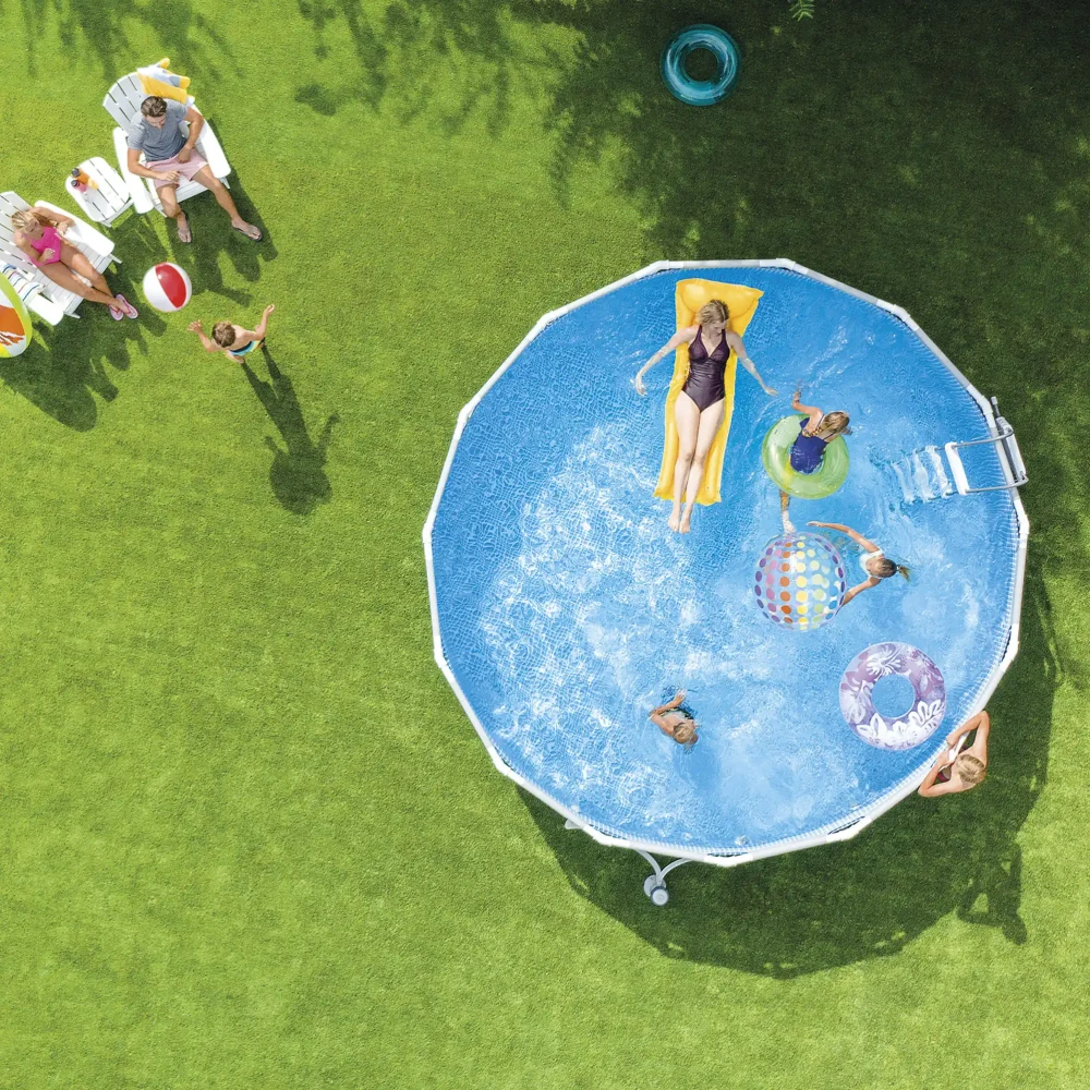 Piscina cu cadru metalic este concepută pentru utilizare sezonieră intensivă, oferind spațiu generos și stabilitate superioară. Structura este realizată din oțel galvanizat rezistent la coroziune, iar elementele de îmbinare asigură rigiditate și susținere optimă pe întreaga durată de utilizare.