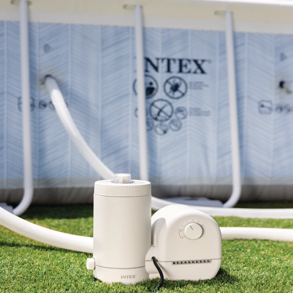 Cu o capacitate generoasă de 19 156 litri, piscina oferă spațiu suficient pentru joacă și relaxare în familie. Setul este complet echipat și include un filtru cu cartuș pentru menținerea apei curate, o scară pentru acces sigur, o prelată solară pentru reducerea evaporării și menținerea temperaturii apei, precum și o protecție pentru baza piscinei, menită să protejeze fundul acesteia.