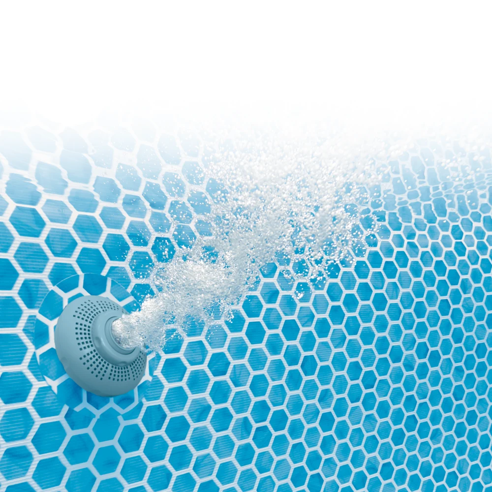 Pachetul include pompă de filtrare cu debit de 1 250 L/h, care ajută la menținerea apei curate și la o întreținere mai ușoară pe durata utilizării. Piscina este prevăzută și cu supapă de golire ce permite conectarea la furtun de grădină pentru evacuarea controlată a apei.
