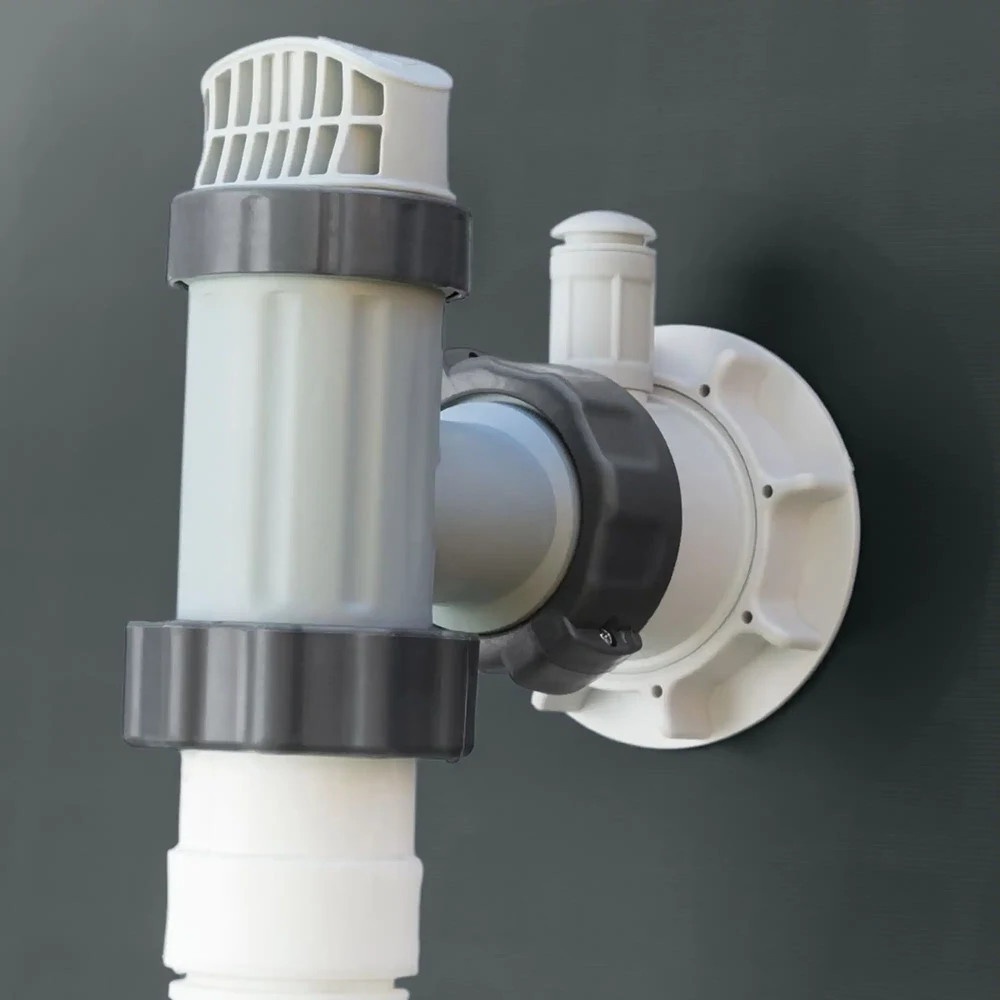 Montajul se realizează pe o suprafață plană și stabilă, fără necesitatea pregătirii speciale a terenului. Supapa de golire permite conectarea la furtun pentru evacuarea controlată a apei.