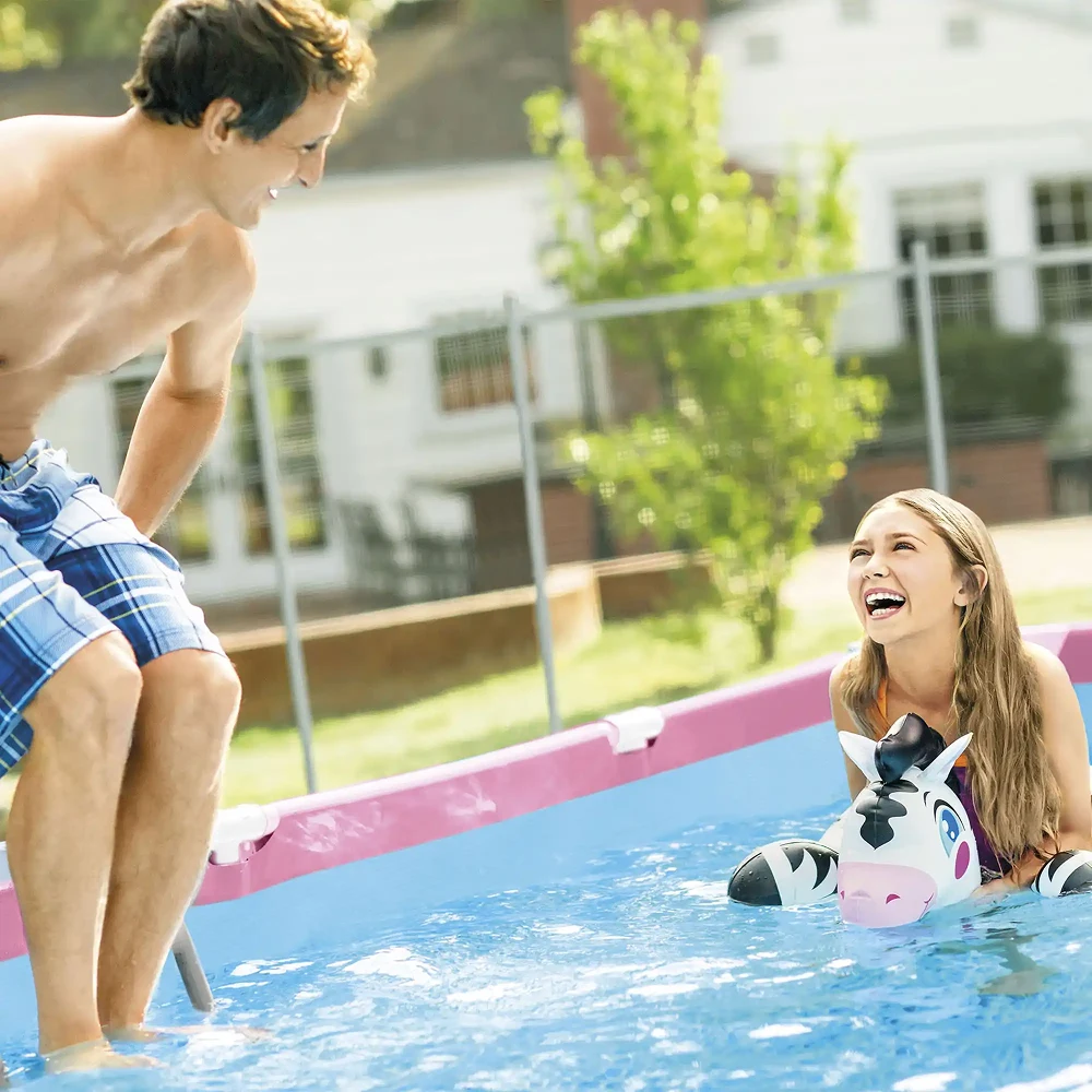 Piscină dreptunghiulară cu cadru metalic din seria Rectangular Frame Pink, cu o capacitate de 1662 L, ideală pentru răcorire rapidă în zilele călduroase. Structura stabilă din oțel galvanizat și pereții rezistenți din PVC asigură durabilitate și siguranță în utilizare, iar montajul este simplu și rapid. Varianta roz adaugă un plus de culoare și veselie în curte sau grădină.