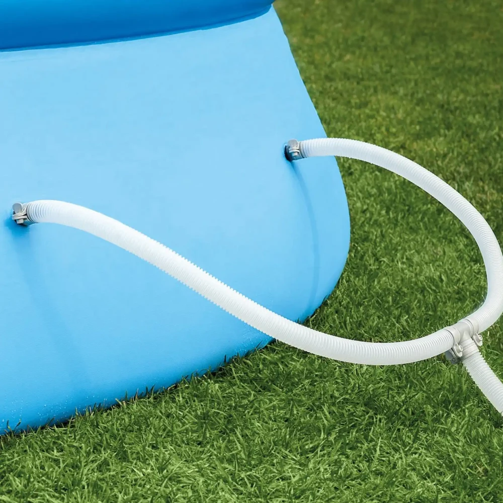 Setul include o pompă de filtrare cu cartuș, care ajută la menținerea apei curate și limpezi pe toată durata utilizării. Cu o capacitate de 9792 litri, piscina oferă spațiu suficient pentru joacă și relaxare, fiind potrivită pentru întreaga familie. După sezon, piscina poate fi golită ușor și depozitată compact.