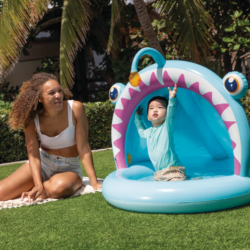 Piscină gonflabilă pentru copii Angler Fish cu protecție solară, 127×102×86 cm, 45 L, 1–3 ani, Intex (58419)