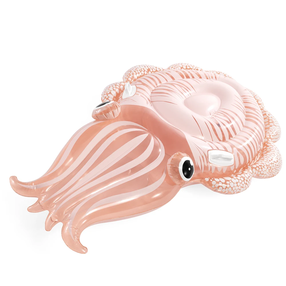Plută gonflabilă în formă de calmar, concepută pentru distracție și relaxare pe apă. Designul generos și mânerele integrate oferă stabilitate și control sporit în timpul utilizării.