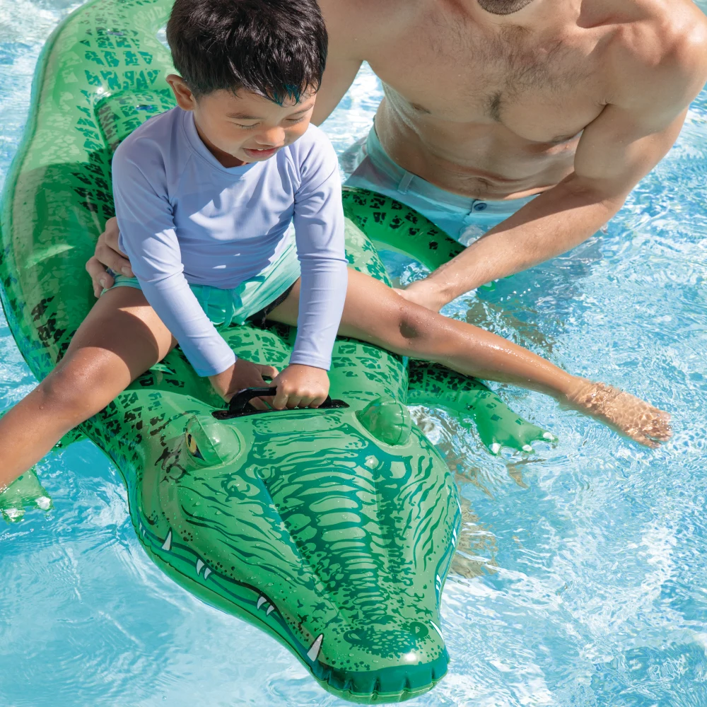 Pluta gonflabilă Crocodil oferă copiilor o experiență de joacă plină de distracție pe apă, combinând un design realist cu o formă adaptată pentru stabilitate. Suprafața generoasă permite poziționarea confortabilă, iar mânerul solid ajută la menținerea echilibrului în timpul utilizării.