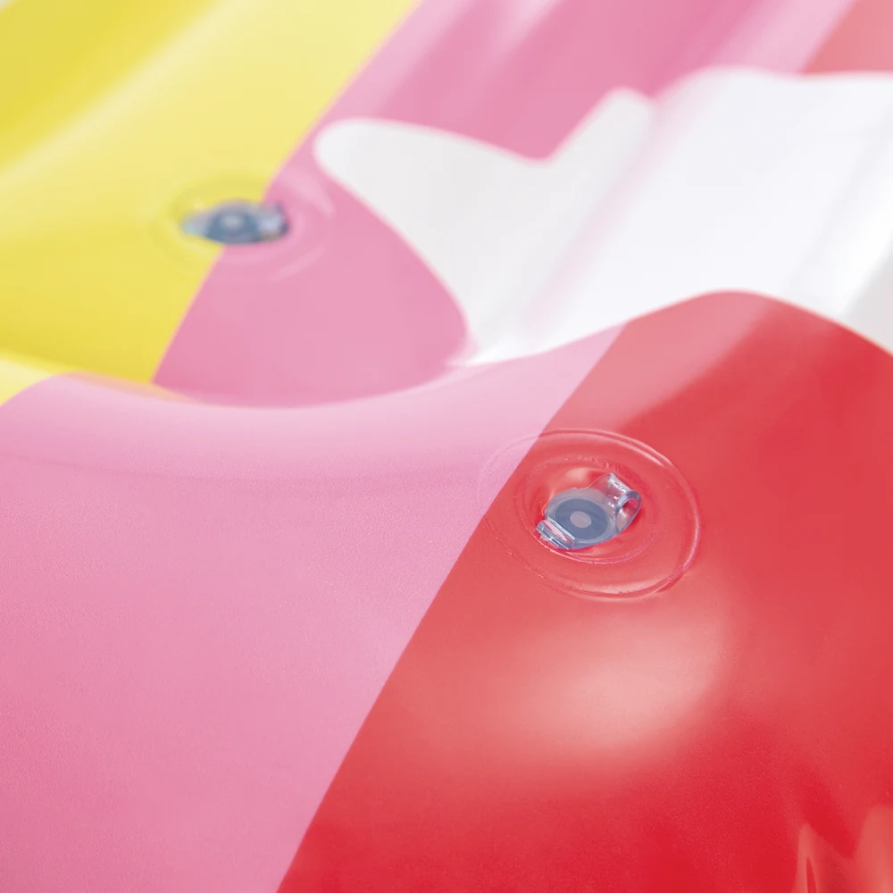 Modelul este realizat din material rezistent, potrivit pentru utilizare frecventă în piscină, la mare sau în zone de agrement. Culorile vii și elementele decorative reliefate contribuie la un aspect plăcut, ușor de remarcat pe apă.