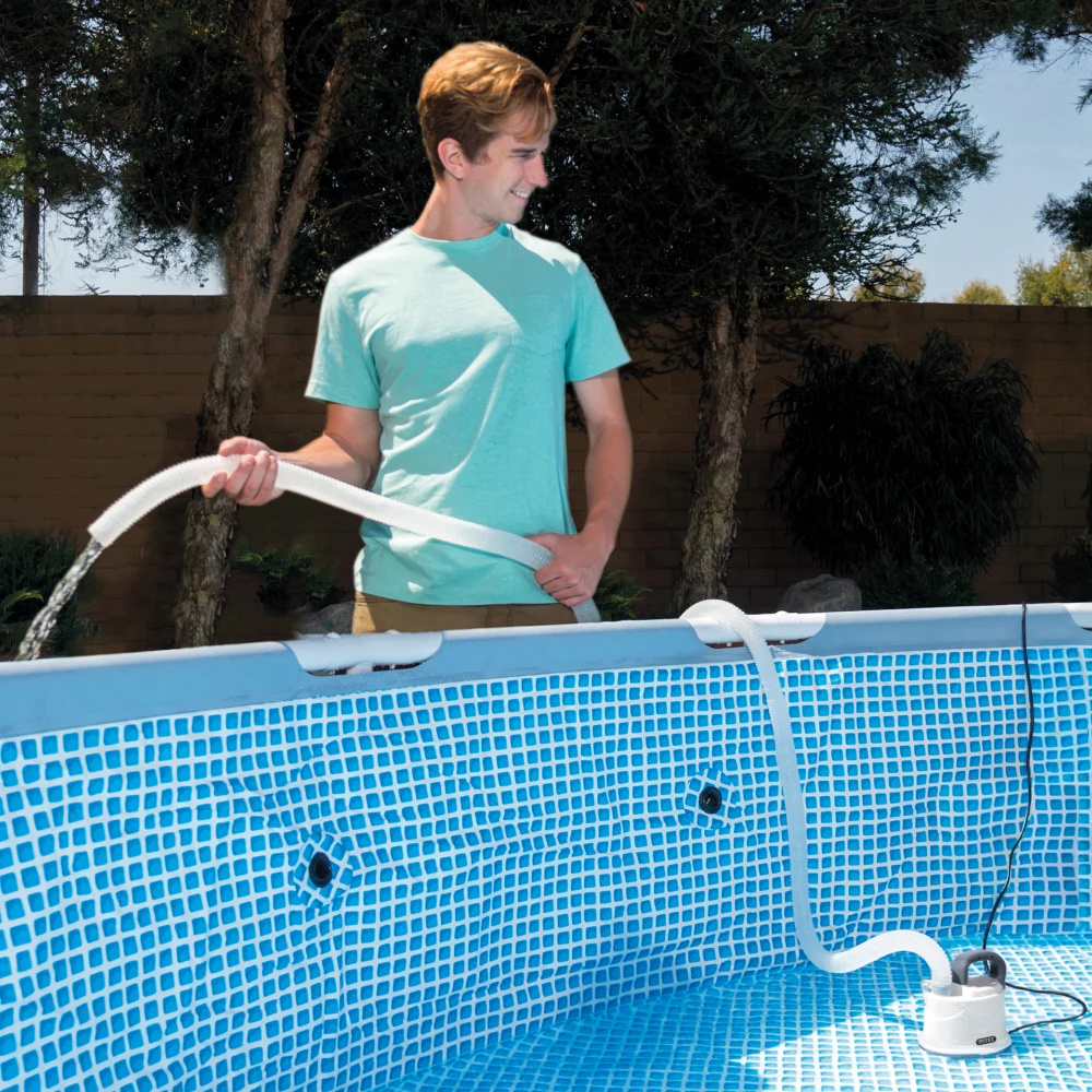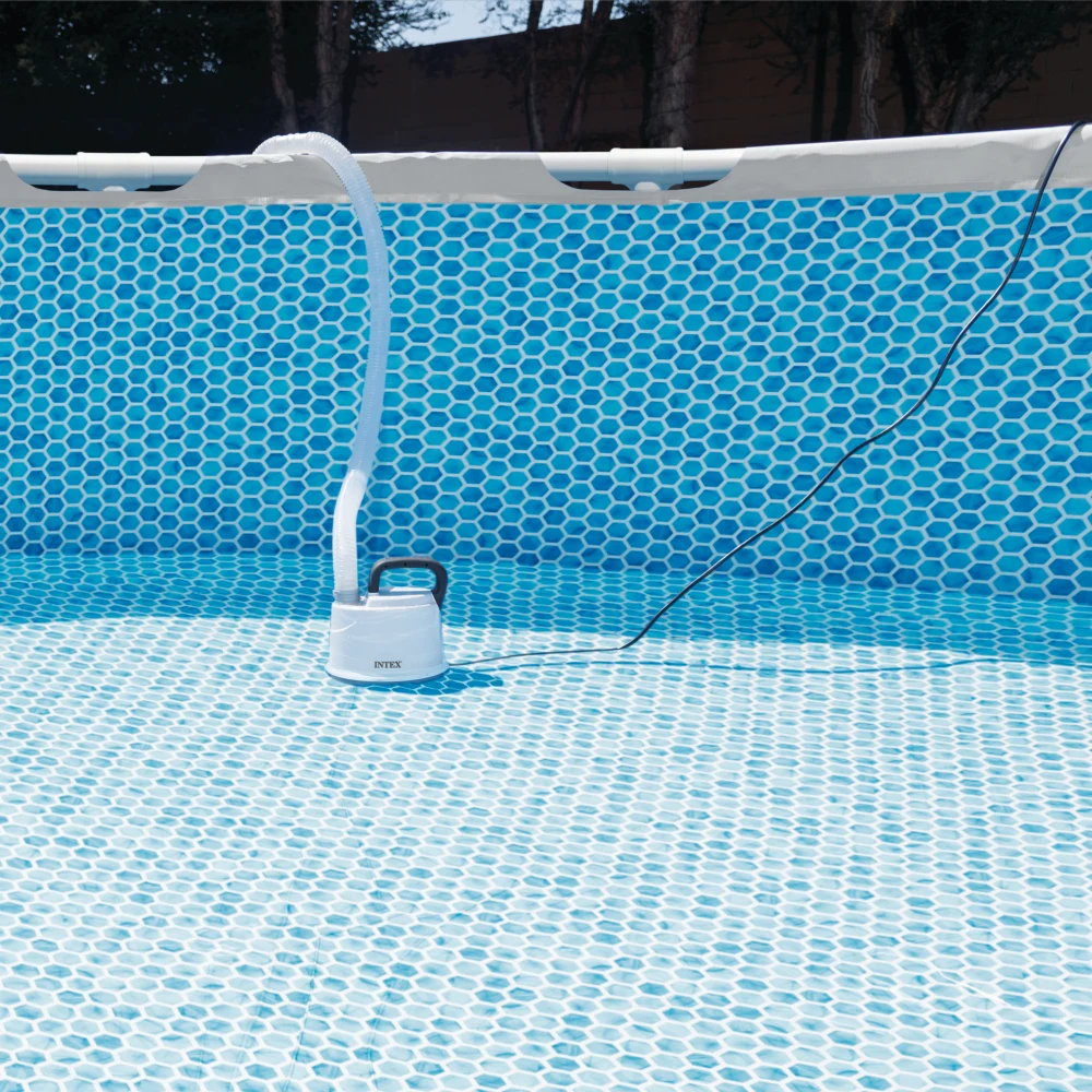 Pompă de golire piscină cu debit de 3595 L/h, concepută pentru evacuarea rapidă a apei din piscinele supraterane. Este utilizată pentru golirea completă a piscinei la final de sezon sau pentru reducerea nivelului apei în timpul întreținerii.