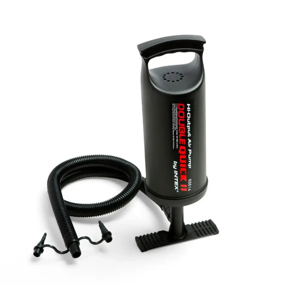 Pompă de aer manuală Double Quick II, 36 cm, ideală pentru umflarea rapidă a produselor gonflabile precum saltele, piscine, bărci sau colaci. Sistemul cu dublă acțiune pompează aer atât la împingere, cât și la tragere, asigurând umflare eficientă, iar furtunul flexibil cu 3 duze o face compatibilă cu majoritatea supapelor pentru produse gonflabile.