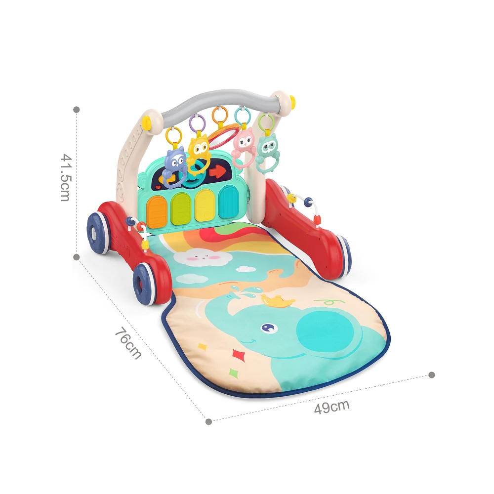 Premergător multifuncțional 2 în 1, cu covoraș de joacă și activități muzicale interactive, ideal pentru stimularea dezvoltării timpurii a bebelușilor.